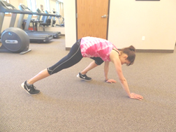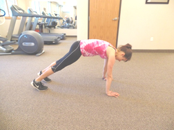 Start on your hands and feet with your back rounded and your “tail tucked”. Push the ground away from you as you spread your shoulder blades apart. Reach forward with your left arm and right knee. Take a deep breath in and out. Alternate reaching forward with right arm and left knee. Take a deep breath in and out. Be sure to keep your “tail tucked” and your abs engaged. Continue this sequence for 10 steps, going slow.