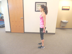 Stand with your back relaxed and ribs down. Raise your right knee as you reach across with your left elbow and allow them to contact. Take a deep breath in and out. Alternate raising your left knee and reach across with your right elbow. Take a deep breath in and out. Continue this sequence for 10 steps, going slow.